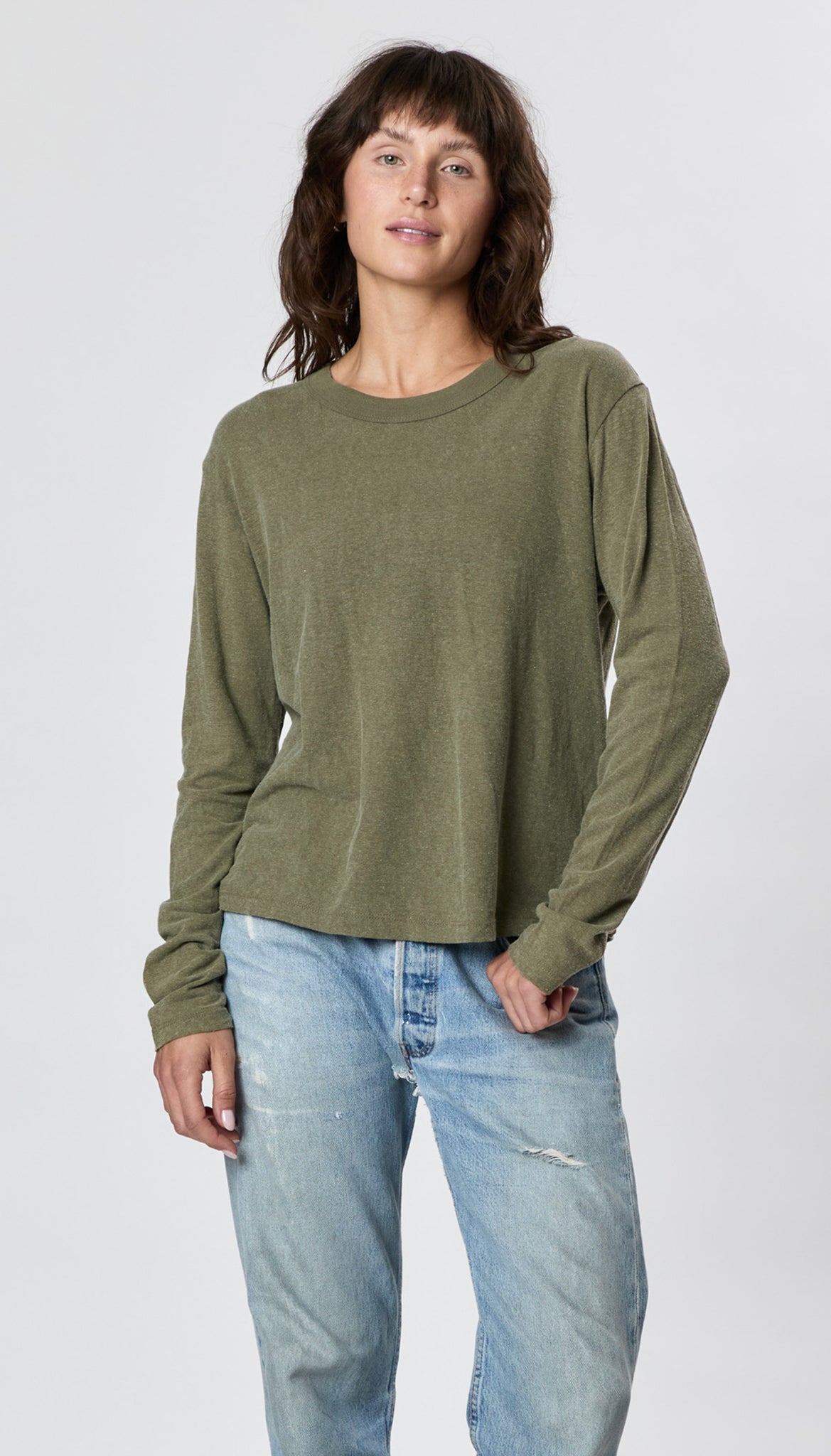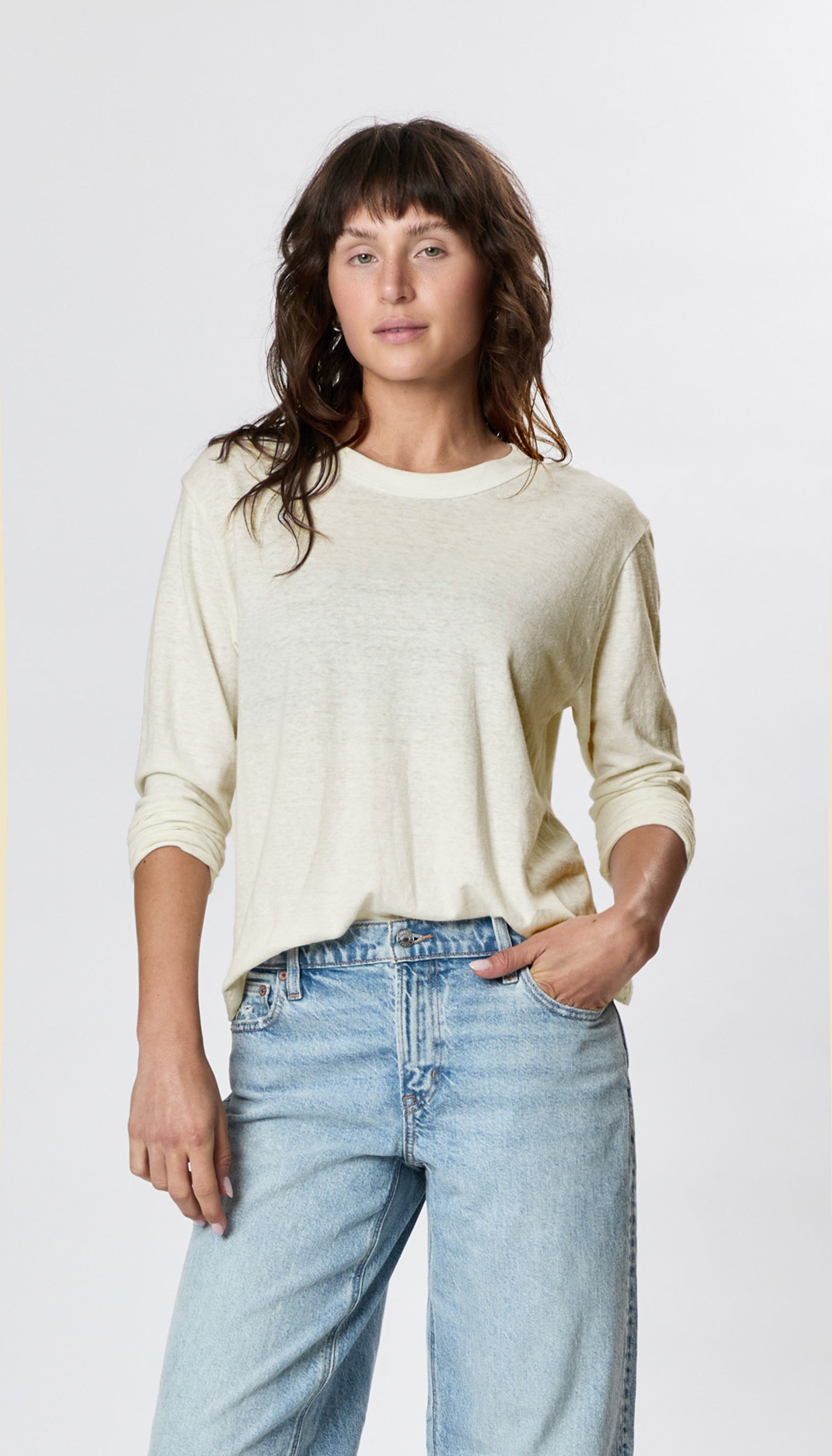 Our best selling tee in long sleeve - the perfect staple tee with a luxurious drape. Its loose, boxy fit and vintage bound neck add a cool factor. Striking the perfect balance between a relaxed, boxy silhouette and a flattering length complements any body shape. Crafted from 55% Hemp and 45% Organic Cotton Jersey, it's durable, hypoallergenic, and gets better with time. Elevate your style with this Goldilocks of tee shirts.